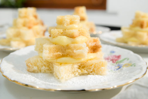 Mi è sempre piaciuto vederli, anche assaggiarli per la verità, ma in questa sede li ho voluti provare da me. Gli alberelli di pandoro con crema al limone rappresentano un’idea golosa per portare in tavola un dessert estremamente facile da realizzare ma di grande effetto. Guardate le facce dei commensali quando si ritroveranno davanti queste delizie in miniatura. Sono sicura che all’ennesimo pandoro che vi ritroverete in casa non avrete poi così tanta voglia di mangiarlo al naturale, ecco che farcirlo può diventare un’ottima alternativa.