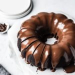 - Una volta che il ciambellone si sarà completamente raffreddato sul piatto da portata, versare la glassa di ganache al cioccolato fondente sulla parte superiore della torta. Usa un movimento lento da un lato all’altro mentre versi per aiutare a guidare la glassa intorno alla torta in modo uniforme. Lasciar solidificare la glassa per un’ora o due. Servire con panna montata e scaglie di cioccolato.
